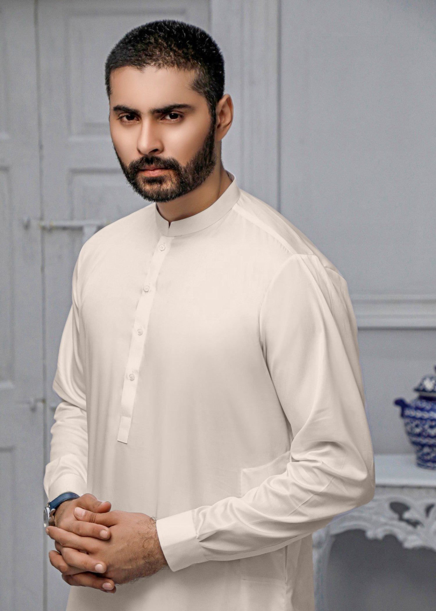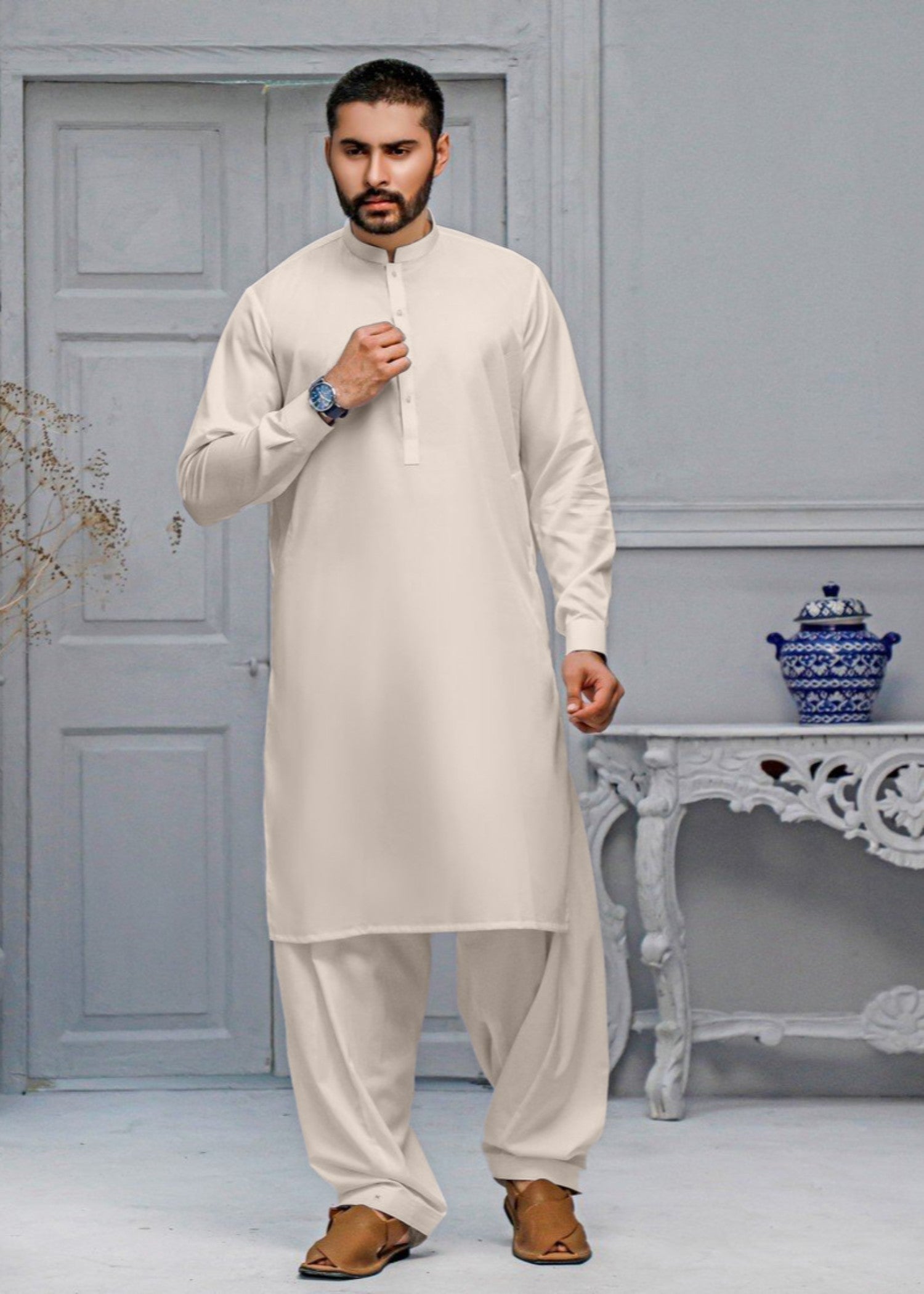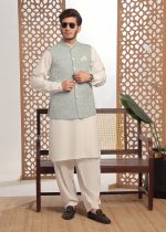 Gender:Â Menn Category:Â Clothingn Outfit Type:Â Easternn Sub-Category:Â Waistcoatn Color Type:Â Off-Whiten Fabric:Â Wash & Wearn Number of Pieces:Â 3 Piece – Top + Bottom + Outerwearn