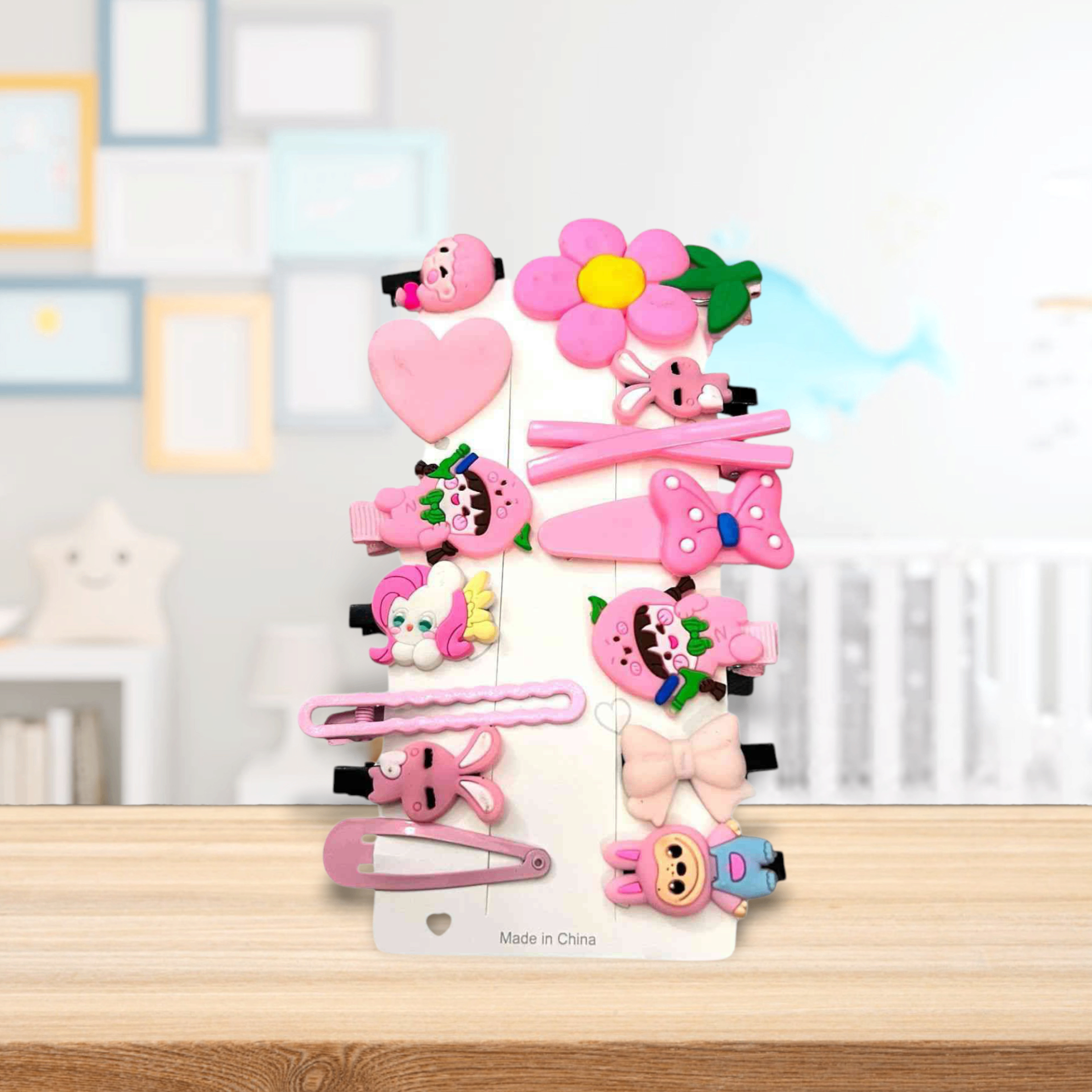 Imported 14 Pcs / Card Girls mix design clips and pins in Baby Pink Color