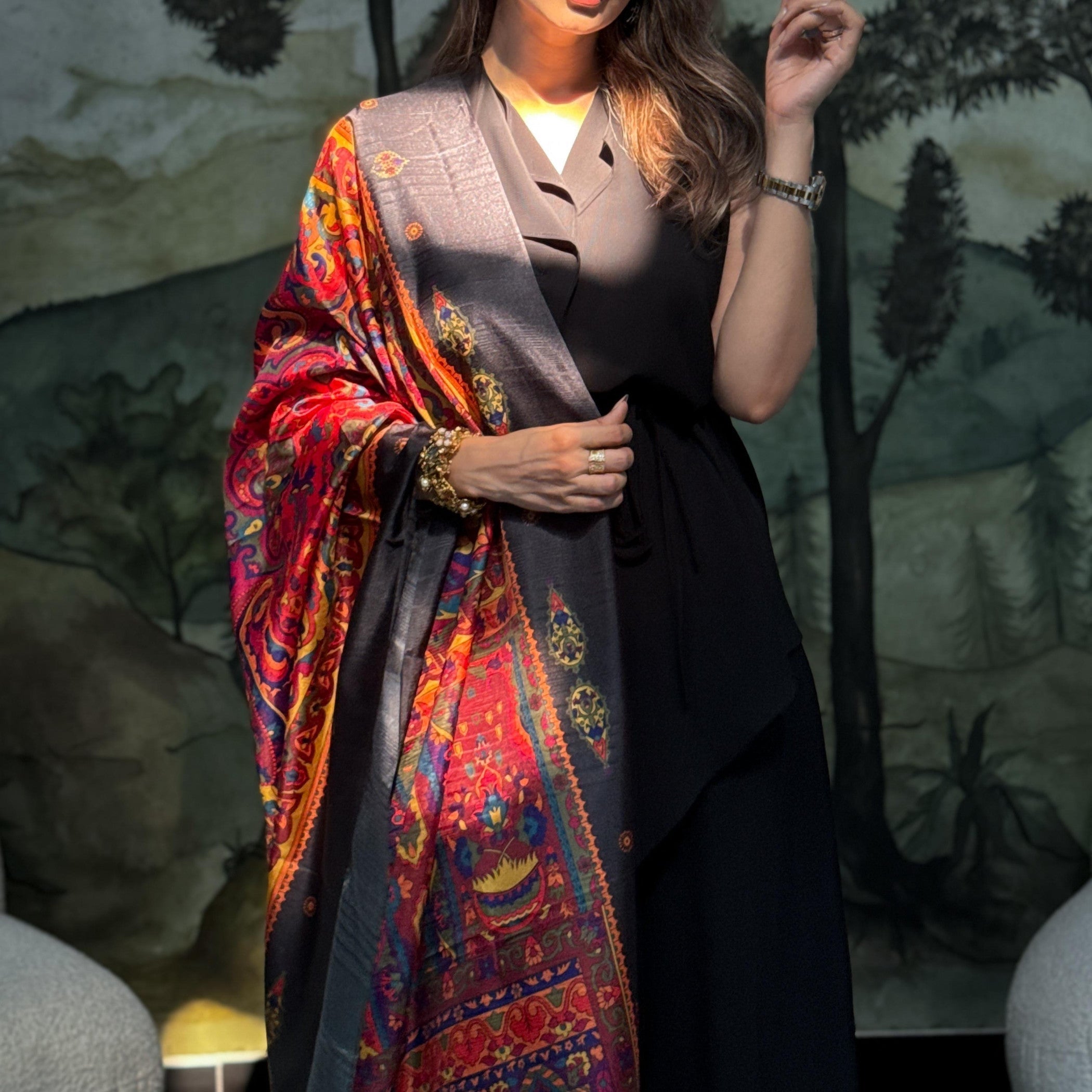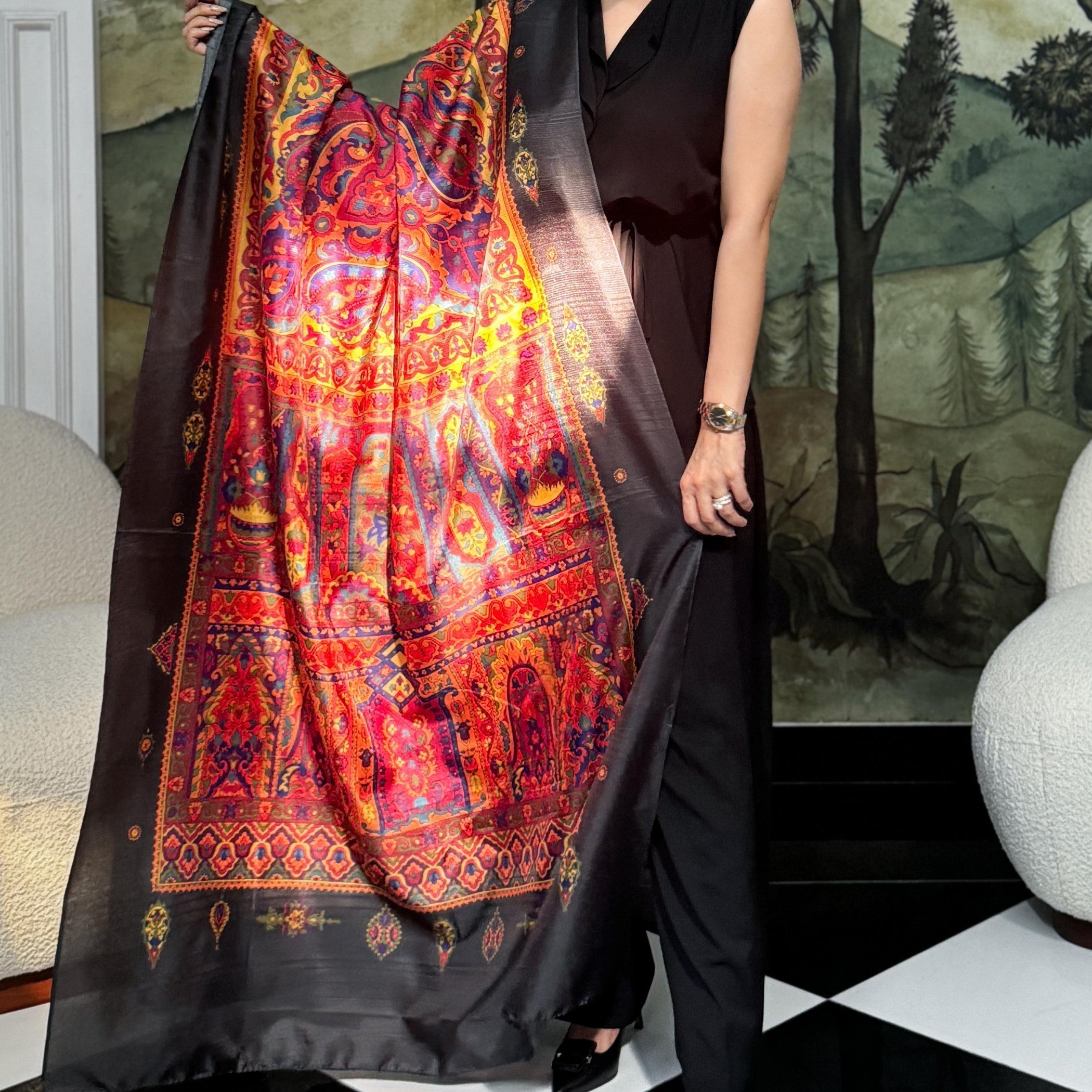 Additional Description:Â Artful hand-painted designs re-imagined through digital printing, blending heritage with innovation.nn100% Pure Poly Tussar Silk Dupattann2.5 metern