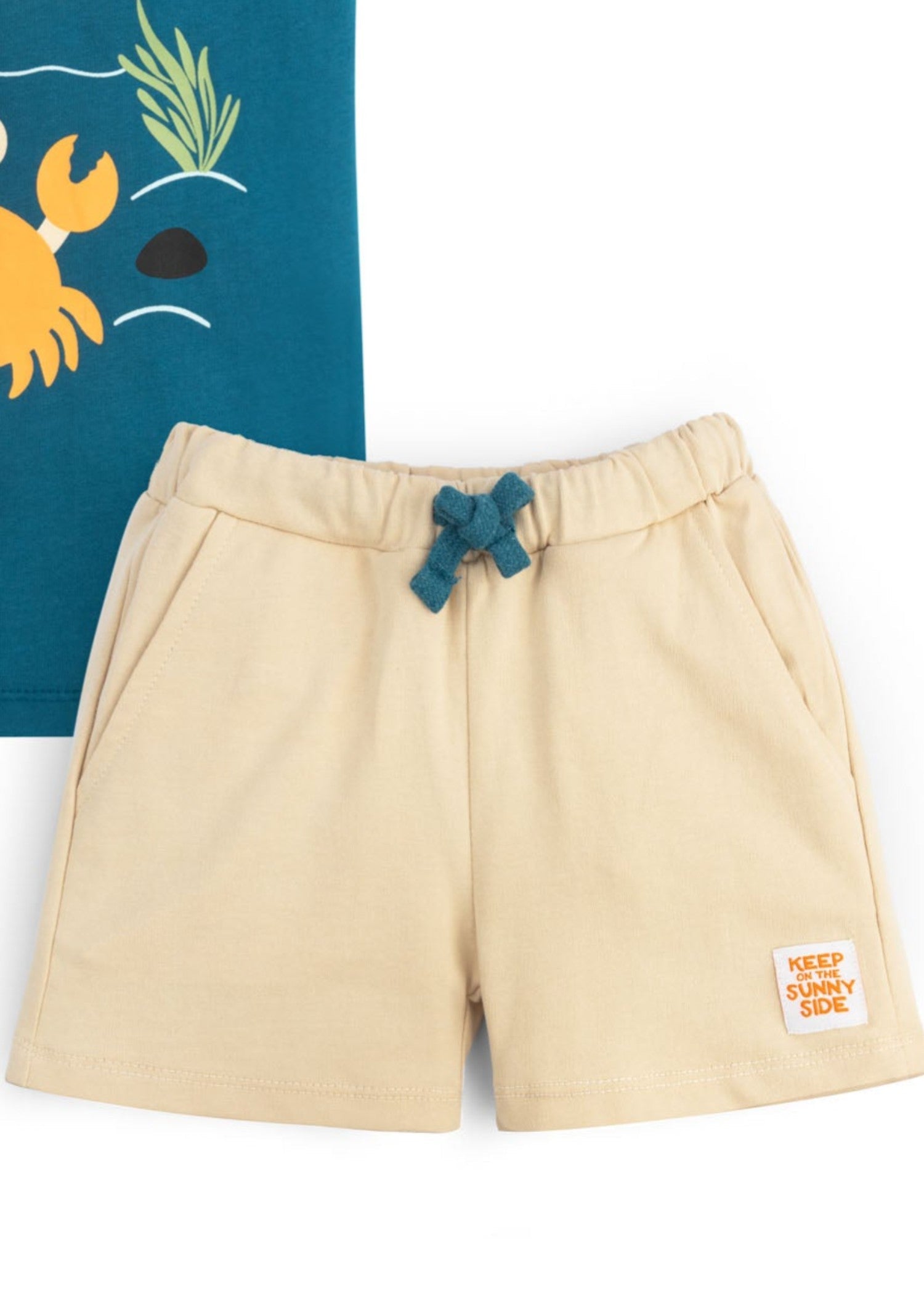 Additional Description:Â This two-pack includes a jersey tee with playful graphics and contrast shoulder panels, paired with comfy drawstring short for a fun and breezy summer vibe.n
